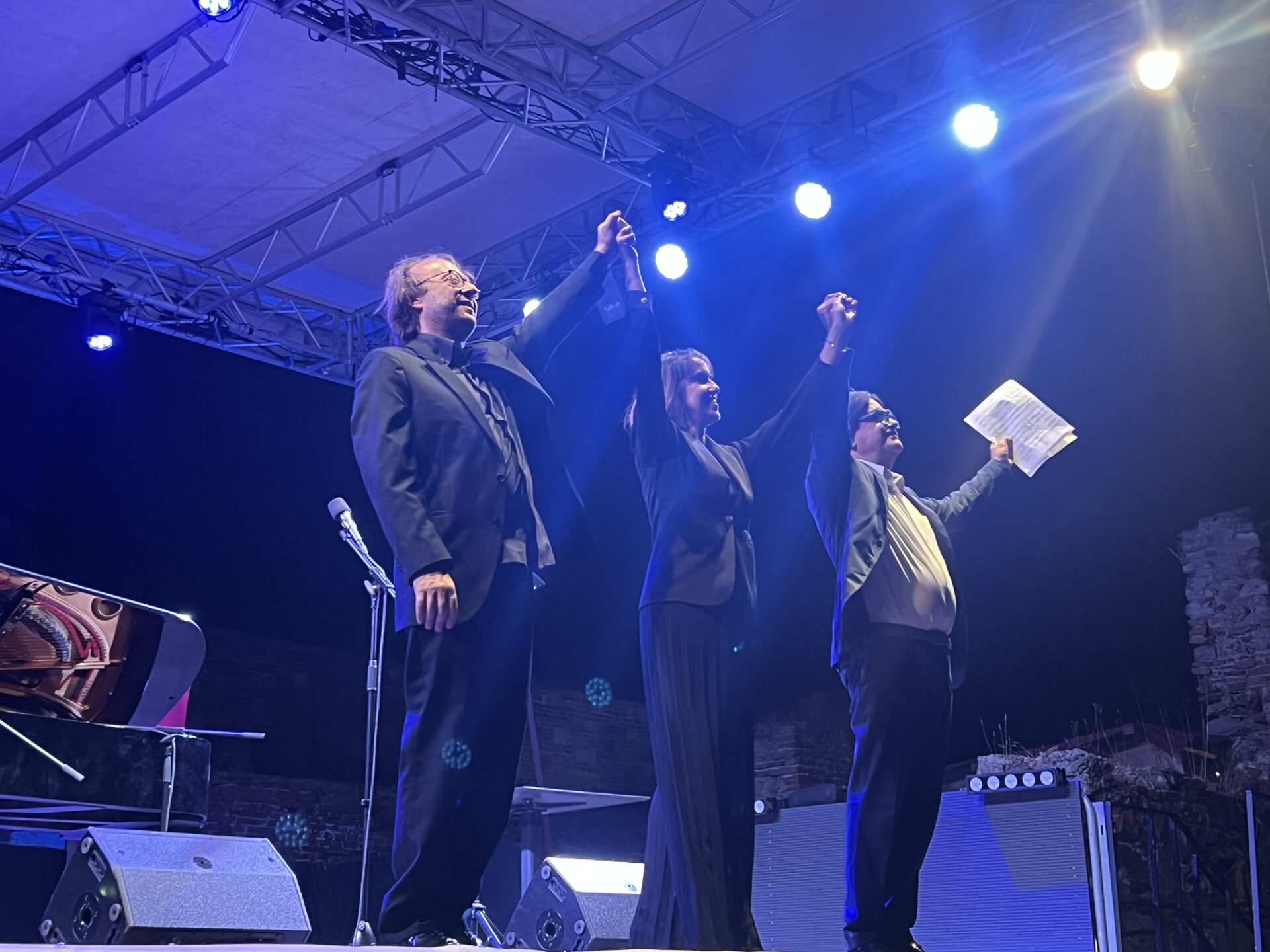 “Mascagni – ha raccontato Elio – litigava con tutti, ma quando si metteva al pianoforte scriveva cose che facevano venire i brividi, e poi amava la sua città. Lui era un musicista ma anche un influencer dell’800, solo invece delle stories scriveva le sinfonie! Ha scritto musiche per il cinema, la sua “Rapsodia satanica” ancora oggi è studiata nelle università, quindi quando guarderete un film americano sapete che tutto è cominciato da un baffuto di Livorno che non voleva saperne di lavorare per il cinema! Se Mascagni fosse vivo oggi sarebbe un artista totale, e firmerebbe musiche internazionali. Pensate all’Intermezzo di CavalleriaRusticana: struggente, lirico, universale, è un brano che parla a tutti senza parole, e ci ricorda che l’arte, quella vera, non ha tempo, non ha confini, e non ha genere”.
