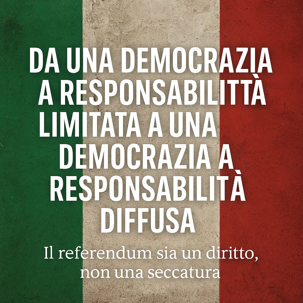 Il referendum non deve essere un fastidio da subire. Deve diventare lo spazio permanente della democrazia costituente. Il cittadino non è un problema da contenere. È una risorsa da liberare, perché la sovranità popolare non è un rischio: è l’essenza della Repubblica!
