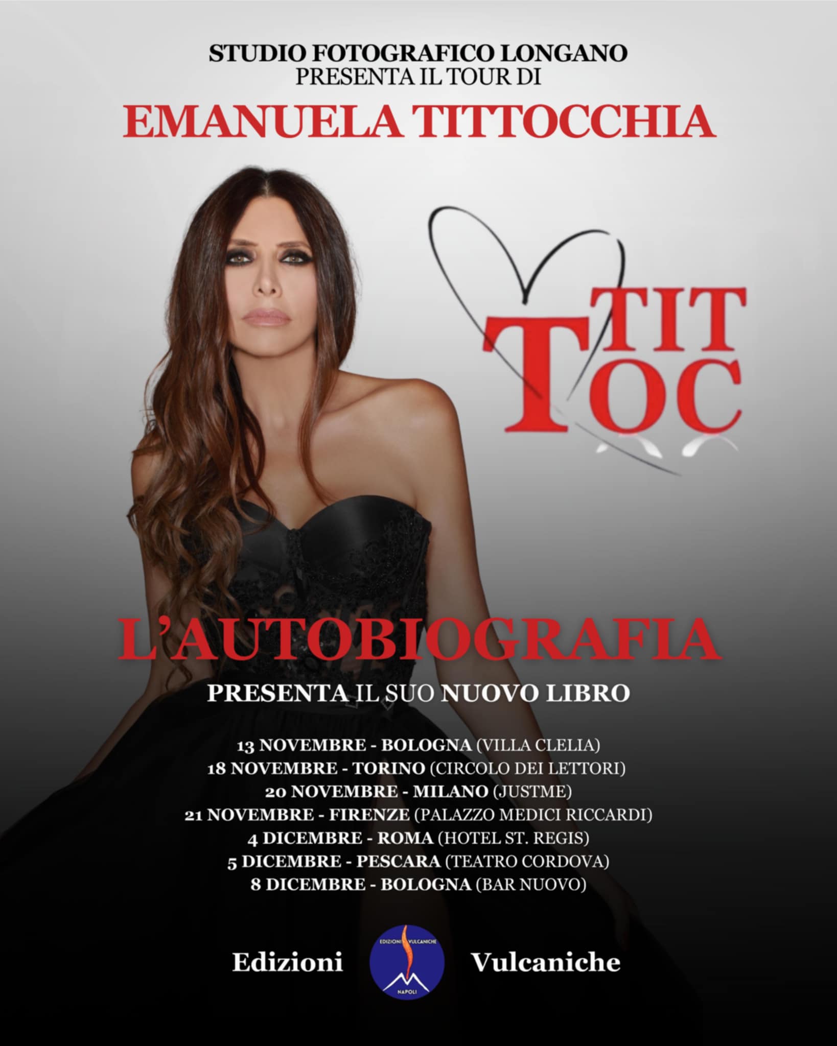 Dopo una lunga carriera nel mondo dello spettacolo, tra fiction di successo, programmi televisivi e teatro, Emanuela Tittocchia firma il suo esordio letterario con il libro “Tit Toc – L’autobiografia”, pubblicato da Edizioni Vulcaniche. La prefazione è del critico letterario Adriano Teresi. Si tratta di un’opera intensa, autentica, a tratti sorprendente, che racchiude non solo il racconto del suo vissuto personale e professionale, ma anche un viaggio profondo nell’animo umano.